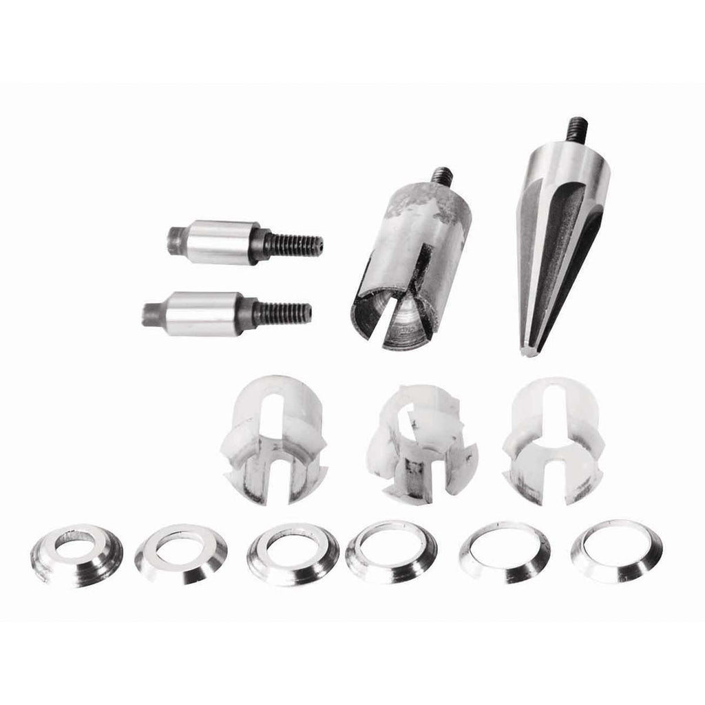 Interchangeable pilots and adjustable stops allow quick changes for multiple calibers
