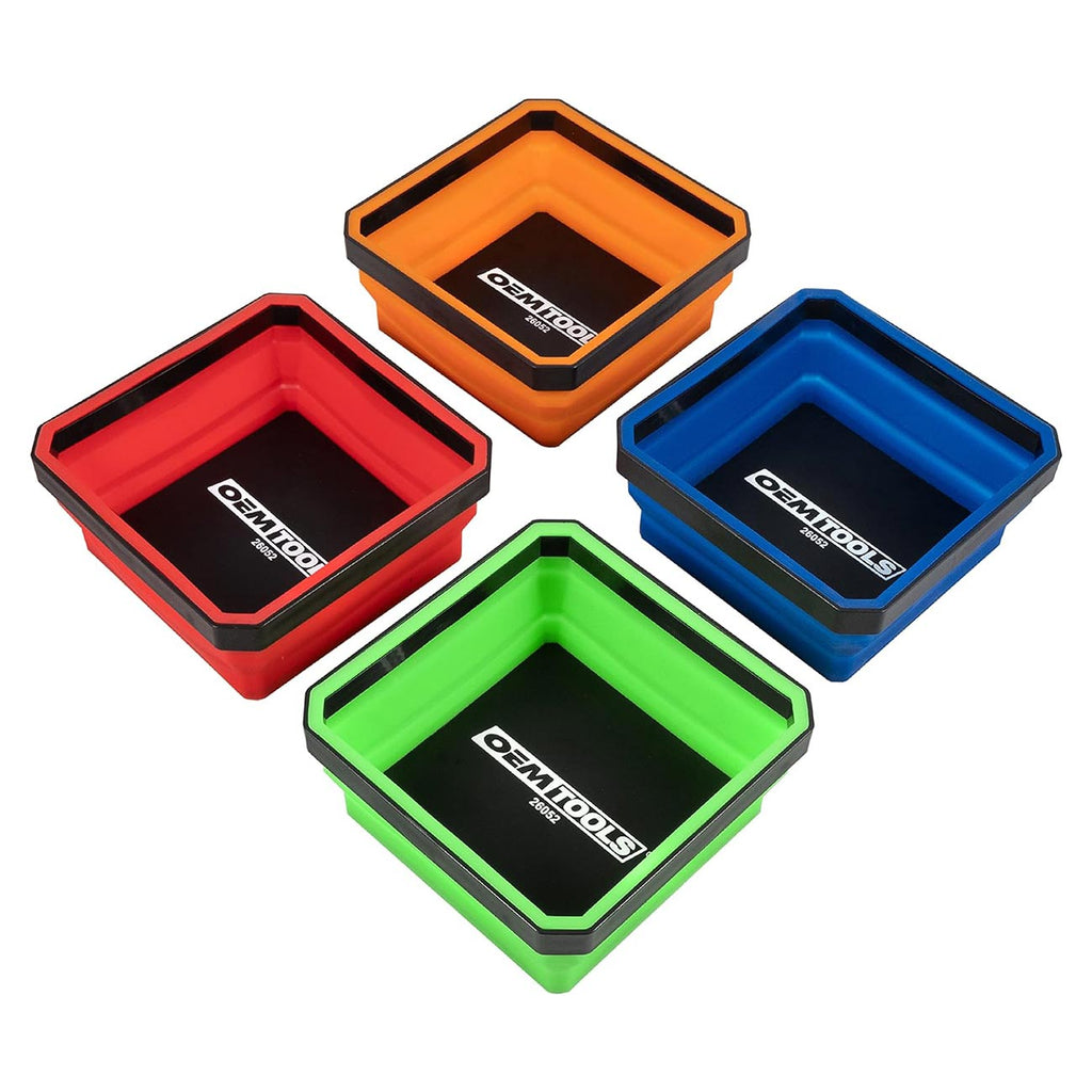 Upgrade your organization and speed up your projects with OEM Tools Magnetic Foldable Tray and Nut Cup Set. Add this 4-pack to your toolbox today and experience a cleaner, more efficient workspace.