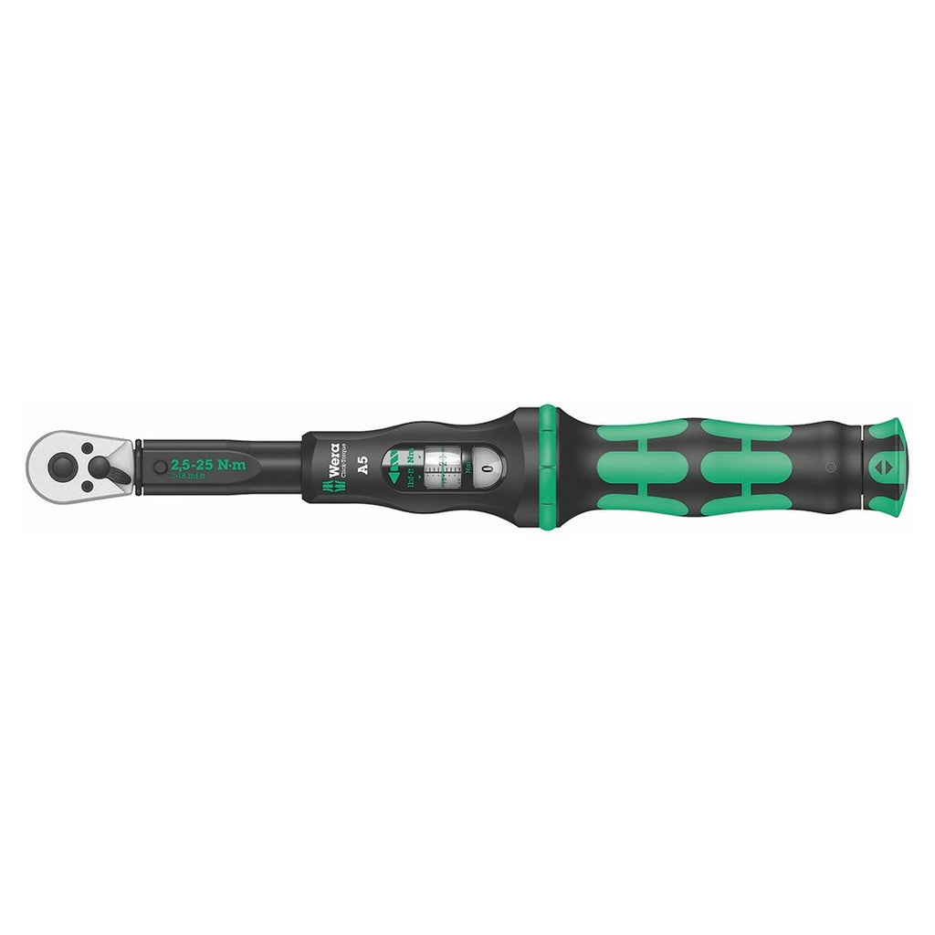Engineered for precise fastening, the Wera Click-Torque (2.5–25 Nm) Reversible 1/4" Drive Ratchet Wrench with NM Scale delivers exact torque every time. The innovative Click-Torque mechanism provides a distinct tactile and audible click when the set torque is reached, helping you avoid over-tightening and ensuring repeatable results across a range of small fasteners.