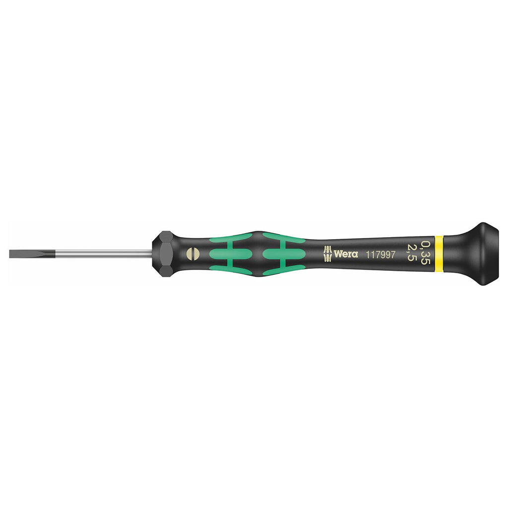 Wera Micro Precision Slotted Screwdriver — built for micro-scale work with a blade sized at 0.40 x 2.5 mm and an overall length of 80 mm. This tool is ideal for delicate fasteners commonly found in electronics, watches, eyeglasses, and other precision assemblies.